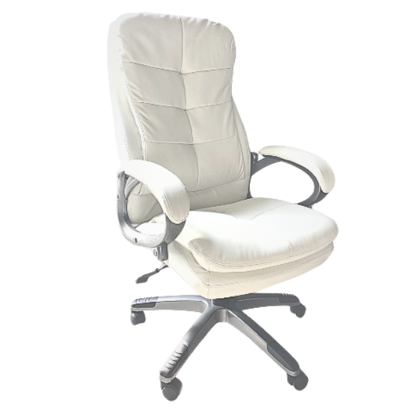 • כסא מנהלים לישיבה ממושכת בצבע לבן.