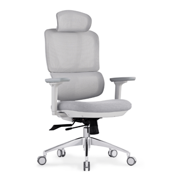 כסא מנהלים ארגונומי אלה – אפור, משענת ראש, עד 140 ק”ג, מגיע מורכב